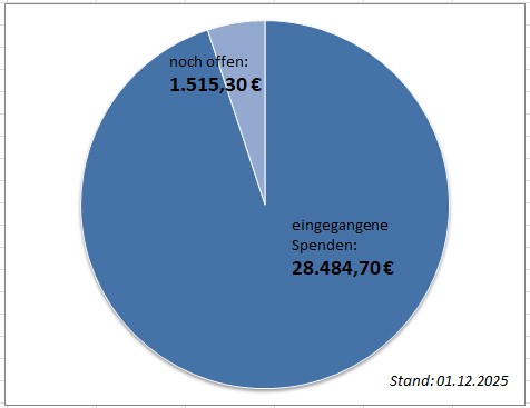 Mit den bisher gesammelten Spenden aus unserer Gemeinde, der Erbschaft, die uns jetzt bereitsteht und einem erheblichen Zuschuss der Landeskirche ist es fast geschafft.