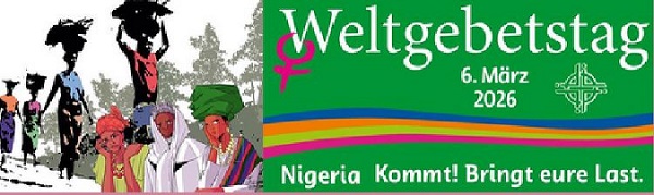 Weltgebetstag Fr 06.03.2026 um 18:00 in in Langenwolmsdorf im Gemeindesaal “Kommt! Bringt eure Last!”, lautet die vertrauensvolle Einladung angelehnt an Matthäus 11,28. Menschen in Nigeria tragen viele Lasten – wortwörtlich auf dem Kopf, aber auch im übertragenen Sinne. Das bevölkerungsreichste Land Afrikas ist geprägt von einer Vielfalt an Kulturen, Sprachen und Religionen – aber auch von Spannungen und blutigen Konflikten. Im Gottesdienst wird jedoch auch deutlich, wie die Verfasserinnen immer wieder innere Rastplätze finden und den Glauben als eine Quelle erleben, aus der sie Hoffnung und Mut schöpfen. Nach einem Gottesdienst werden wir traditionell landestypische Speisen kosten. |